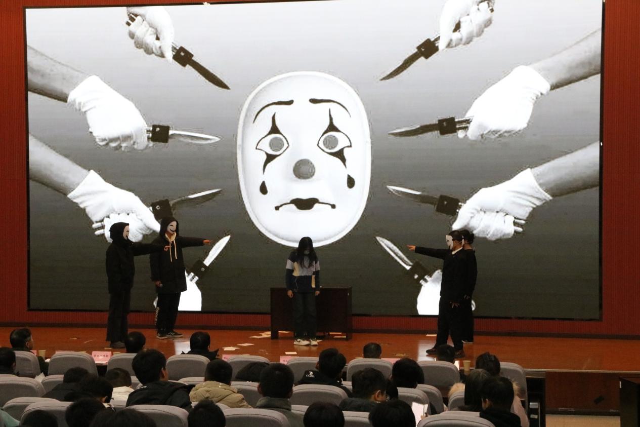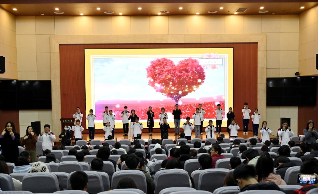 大家共同觀看了心理育人工作成果匯報(bào)演出。音樂(lè)系同學(xué)帶來(lái)的與專(zhuān)業(yè)特長(zhǎng)相結(jié)合的心理情景劇《成長(zhǎng)的岔路口——與嫉妒和解》作為開(kāi)場(chǎng)演出。電子工程學(xué)院智能2301班心理委員袁敏佳為大家展示了主題班會(huì)《告別社恐愛(ài)上溝通》。馬克思主義學(xué)院的研究生們?yōu)榇蠹已莩隽诵睦砬榫皠 稛ā?。?jì)算機(jī)學(xué)院大一的同學(xué)們出演了心理情景劇《撕開(kāi)迷霧》。心理專(zhuān)干、心理中心教師與心理委員聯(lián)合協(xié)會(huì)、心理協(xié)會(huì)的同學(xué)們共同出演了手語(yǔ)舞《感恩的心》。