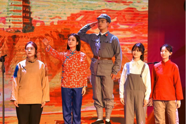 在藝術(shù)展演上篇中,男聲獨唱《這就是我的祖國》以聲為賦、以音傳情,帶領(lǐng)觀眾與祖國同呼吸、與民族共命運、與時代共奮進;創(chuàng)意表演《葬花吟》藝術(shù)風(fēng)格獨特,賡續(xù)優(yōu)秀傳統(tǒng)文化;詩朗誦《以夢為馬》帶領(lǐng)觀眾感悟青春奮斗與積極樂觀;紅色歌劇片段《繡紅旗》《我的愛人你可聽見》《天邊有顆閃亮的星》展現(xiàn)了革命者們對信仰和理想的堅定信念和不屈精神;大學(xué)生藝術(shù)團帶來的現(xiàn)代舞《一葷一素》在豐富多變的節(jié)奏和絢麗多姿的舞蹈中將藝術(shù)展演的上半場推向高潮。
