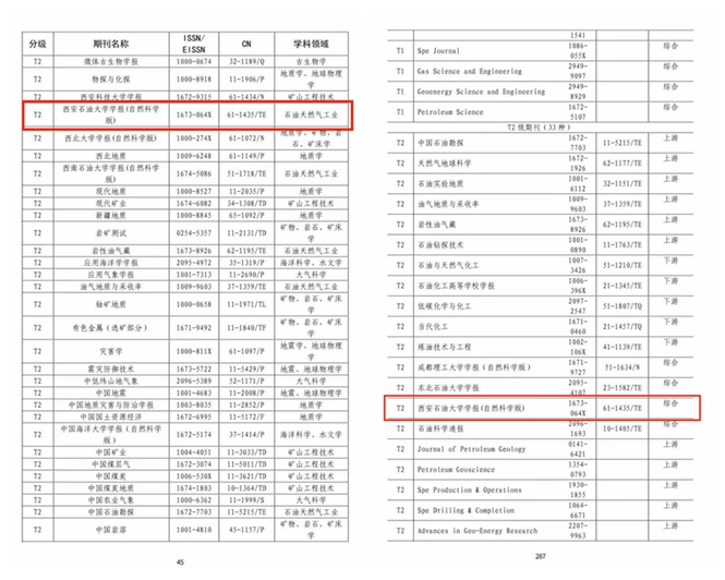 近日,中國(guó)科學(xué)技術(shù)協(xié)會(huì)官網(wǎng)正式發(fā)布《高質(zhì)量科技期刊分級(jí)目錄總匯第三版》。《西安石油大學(xué)學(xué)報(bào)(自然科學(xué)版)》入選2023年度地球科學(xué)領(lǐng)域高質(zhì)量科技期刊分級(jí)目錄T2級(jí)期刊,2023年度石油、天然氣工業(yè)領(lǐng)域高質(zhì)量科技期刊分級(jí)目錄T2級(jí)期刊。這是繼本刊入選《科技期刊世界影響力指數(shù)(WJCI)報(bào)告》(2023)后的又一殊榮。