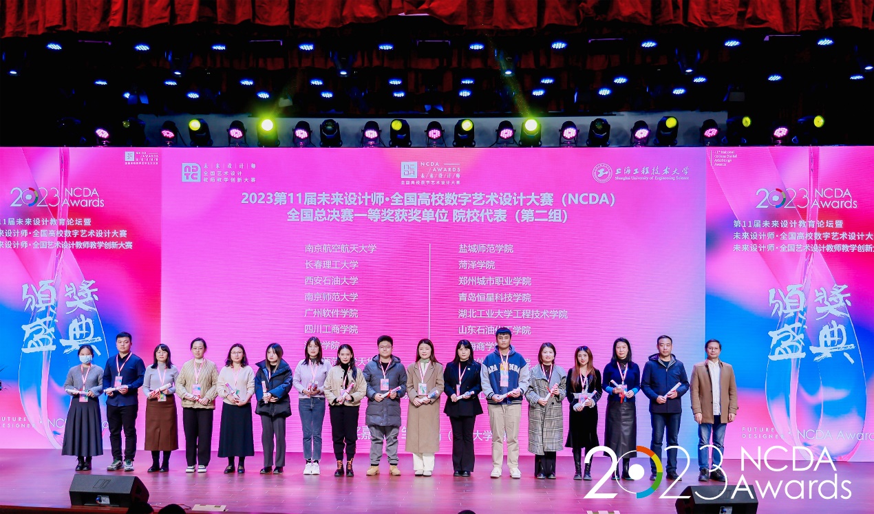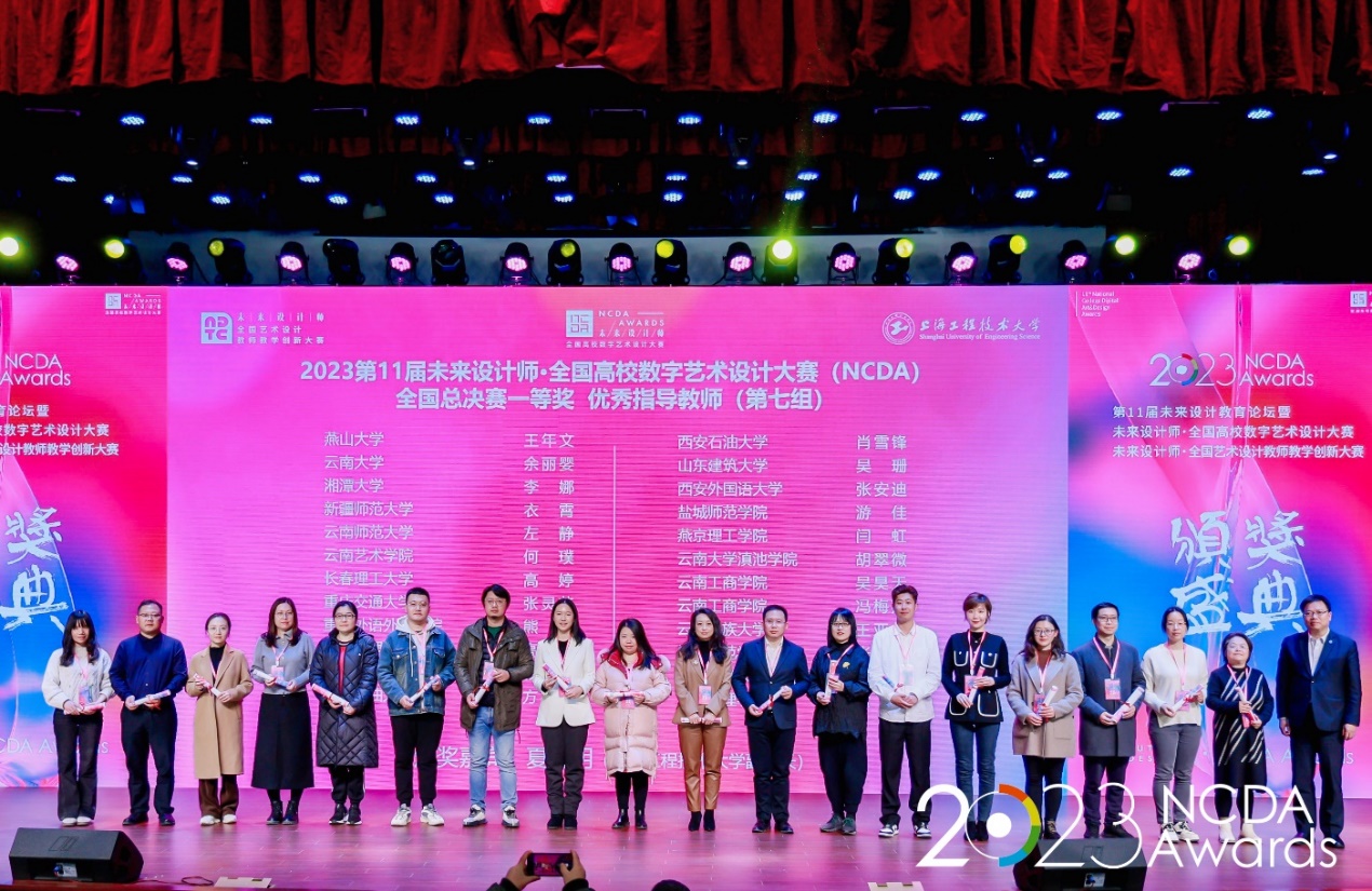 12月1日,由工業(yè)和信息化部人才交流中心主辦的第11屆未來設(shè)計師–全國高校數(shù)字藝術(shù)設(shè)計大賽頒獎盛典在上海隆重舉行。我校人文學院副院長方松林、設(shè)計系教師肖雪鋒和王姿分別作為全國總決賽一等獎優(yōu)秀指導教師、全國總決賽一等獎獲獎院校代表受邀出席。