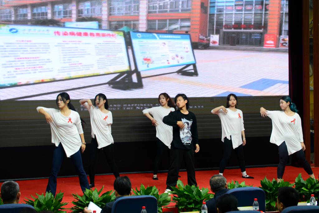 活動中,同學(xué)們穿插表演了舞蹈《擁抱我》、舞蹈《心的呼喚》、三句半《新四大才子》、跆拳道和舞臺劇《我的“艾”情》等節(jié)目,既展示了同學(xué)們的青春活力,也用生動活潑、簡單易懂的形式告訴大家有關(guān)艾滋病的知識。通過人物角色扮演講述在不同場景中出現(xiàn)的易感染艾滋病病毒的行為,以創(chuàng)設(shè)真實情境和模擬現(xiàn)實人物的形式引導(dǎo)同學(xué)們對艾滋病防控進行深入的思考,找到預(yù)防疾病侵襲、得到幸福生活的路徑和答案。