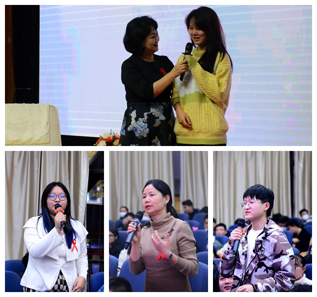 訪談環(huán)節(jié),“紅絲帶”健康大使鞠萍與孫永濤教授、任強所長通過專家訪談、師生提問互動等方式,娓娓道來,為同學(xué)們詳細講解了艾滋病的傳播途徑、感染風(fēng)險、預(yù)防措施,引導(dǎo)學(xué)生樹立正確的價值觀,正確認識艾滋病,對待艾滋病,共同維護健康和諧的校園生活,努力成長為能吃苦、敢擔當、有理想、肯奮斗的新時代好青年。