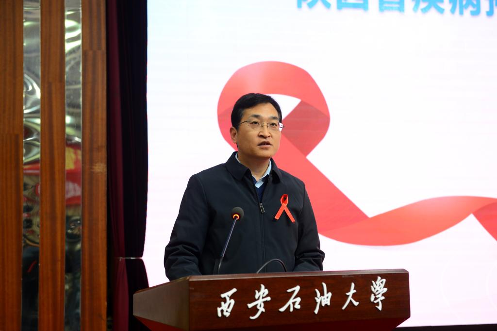常江代表學(xué)校致歡迎詞,向出席本次活動的各位領(lǐng)導(dǎo)、嘉賓表示誠摯的歡迎,并對我校艾滋病防控工作進行了介紹。常江指出,高校作為青年的聚集地、培育地,不僅是傳授知識的重要場所,更是塑造健康身心的重要陣地。今天在我們校園舉辦這樣的儀式,就是要凝聚共識,加大宣傳,發(fā)揮教育作為預(yù)防艾滋病的“社會疫苗”作用,作為抗擊艾滋病的有效手段,努力遏制艾滋病在校園的傳播勢頭,提升大學(xué)生的健康素養(yǎng)。