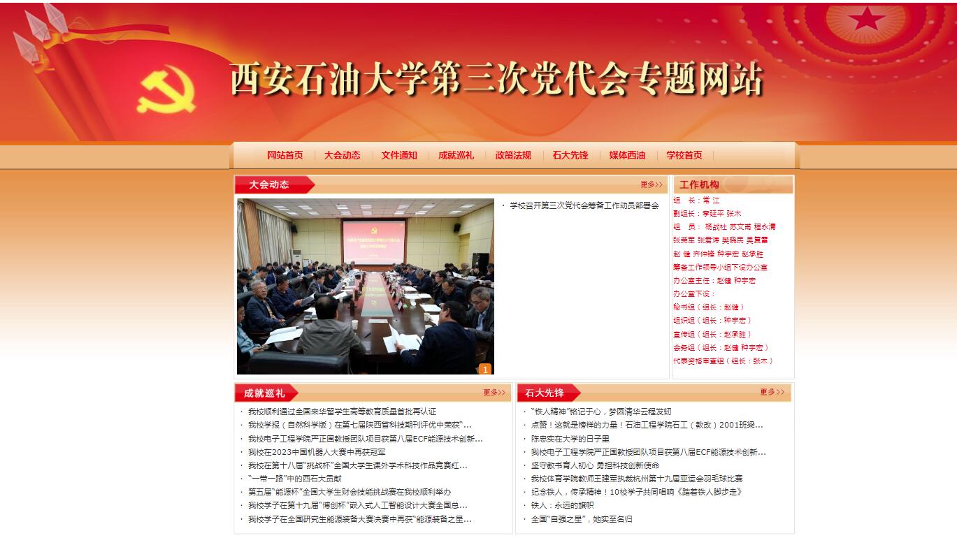西安石油大學第三次黨代會專題網(wǎng)站開通上線