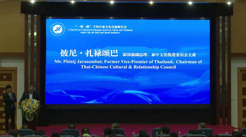 座談會后,披尼·扎祿頌巴主席在學術(shù)報告廳為我校師生作了“‘一帶一路’下的中泰文化交流”報告會。披尼·扎祿頌巴主席回顧了近年來“一帶一路”下中泰友好交流動態(tài),高度評價“一帶一路”十年來為各國發(fā)展特別是中泰友好發(fā)展帶來的益處,為廣大師生了解掌握“一帶一路”下國際合作與發(fā)展形勢拓寬了視野、增進了了解。