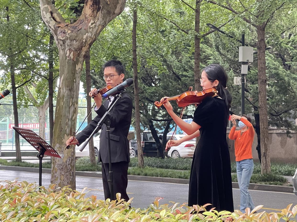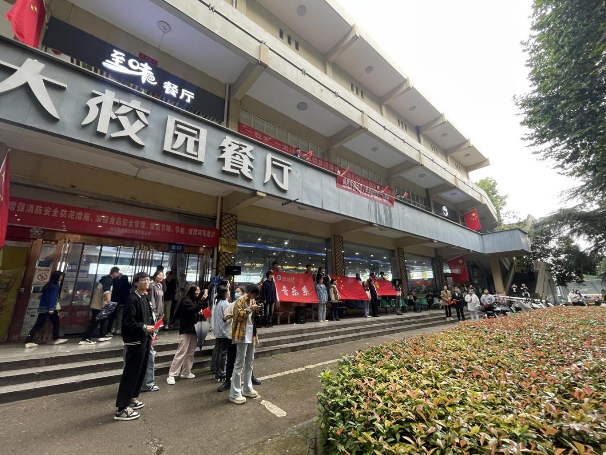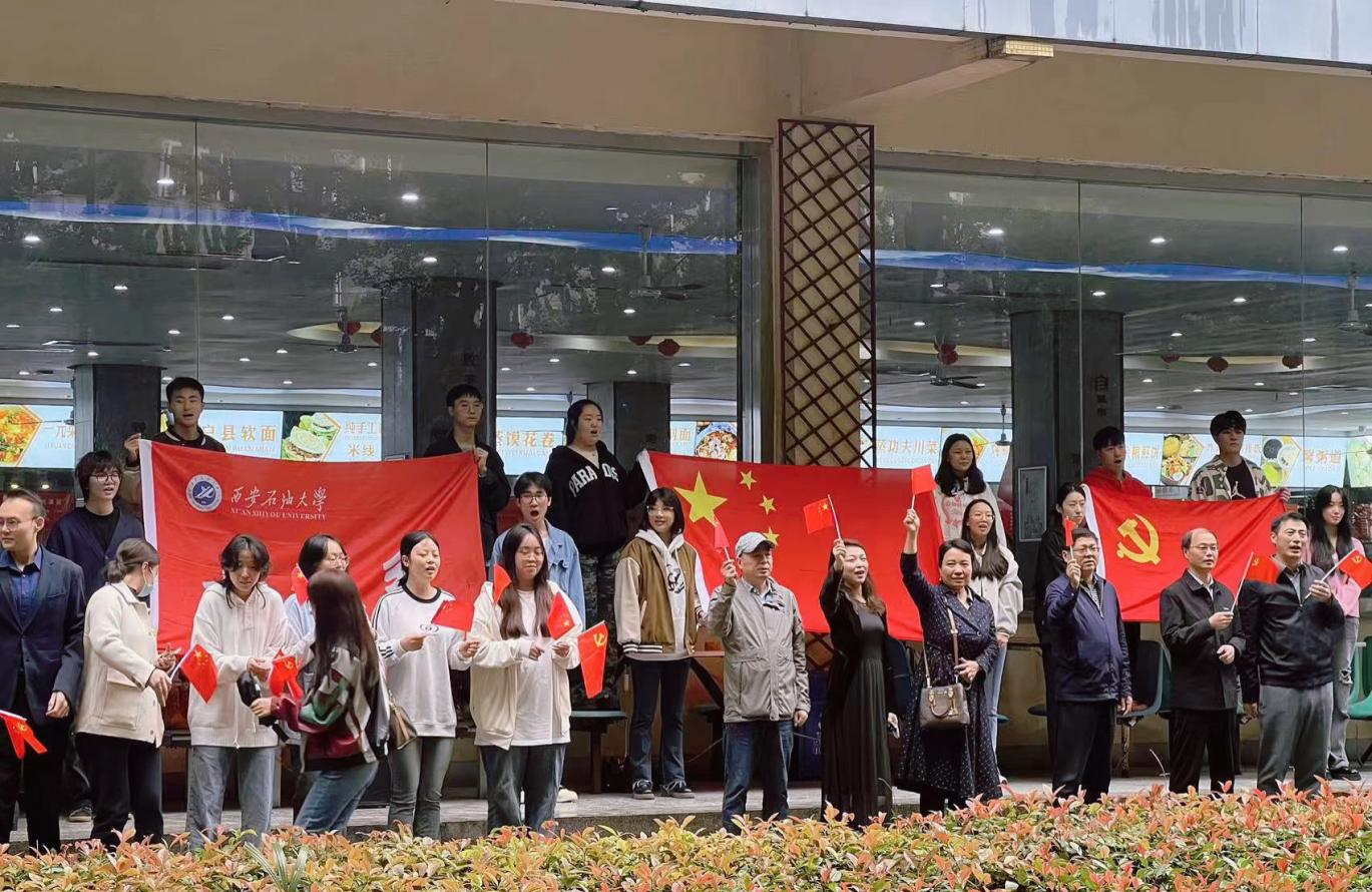 為慶祝中華人民共和國74歲華誕,激發(fā)廣大師生的愛國熱情,9月27日中午,我校音樂系組織師生在雁塔校區(qū)學(xué)生餐廳舉辦“紅歌快閃”活動,圍繞“頌”祖國、“唱”祖國、“看”祖國等形式,進一步引導(dǎo)廣大師生傳承紅色愛國基因、樹立制度自信、展現(xiàn)青春風(fēng)貌。學(xué)??倳嫀煼畷悦?,研究生工作部、國際交流與合作處、高教研究與評估中心負(fù)責(zé)人,以及40余名音樂系師生參加了本次“紅歌快閃”活動。該活動由音樂系黨總支策劃,后勤處協(xié)辦,聲樂教研室朱玥老師指導(dǎo)。
