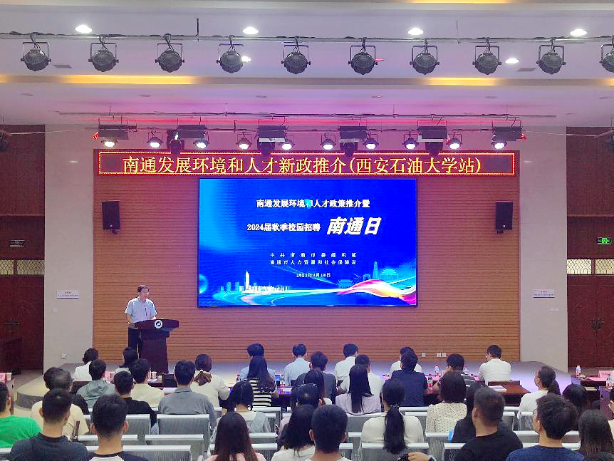 王一鳴代表南通市人力資源和社會保障局,向長期以來給予南通人才發(fā)展的學(xué)校領(lǐng)導(dǎo)、老師和學(xué)生表示衷心的感謝。他表示,西安石油大學(xué)是南通市在陜西省建立的第一個高校人才工作站,學(xué)校多年來充分發(fā)揮引才橋頭堡作用,全力搭建校地對接平臺,促成了西安地區(qū)高校與南通在高端紡織、生物醫(yī)藥等多個領(lǐng)域的深度合作。當(dāng)前的南通正處在新一輪跨越發(fā)展的黃金機(jī)遇期,站上了千載難逢的絕佳“風(fēng)口期”,南通比以往任何時候都更加需要人才、渴求人才,也比以往任何時候都更有條件吸引人才、成就人才。他真誠地希望大家繼續(xù)關(guān)心支持南通的發(fā)展,積極宣傳推介南通的人才政策和環(huán)境。真誠地希望更多的西安石油大學(xué)畢業(yè)生選擇南通、圓夢南通,共享時代紅利和發(fā)展機(jī)遇,讓青春之我與未來之城在新時代新征程中同頻共振、綻放華彩。