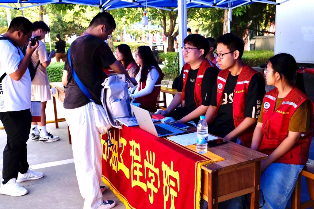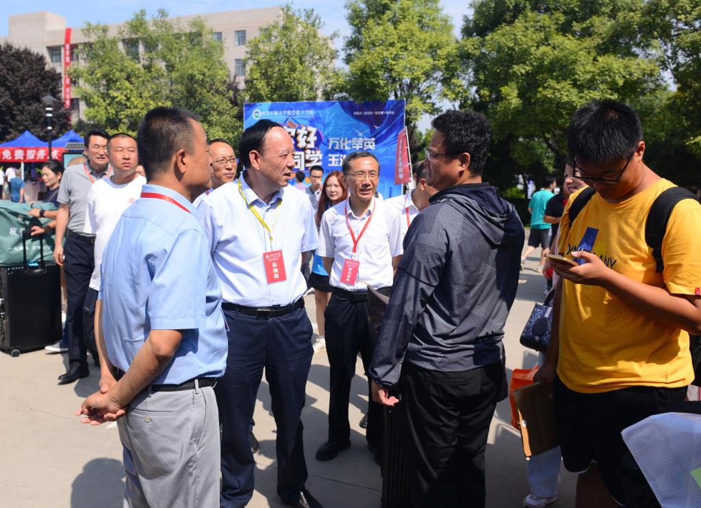 校黨委書記賽云秀、校長李天太、校黨委副書記張木、副校長程永清、總會計師樊曉民等黨政領(lǐng)導(dǎo)親臨現(xiàn)場看望2023級新生及家長,并慰問迎新工作人員。
