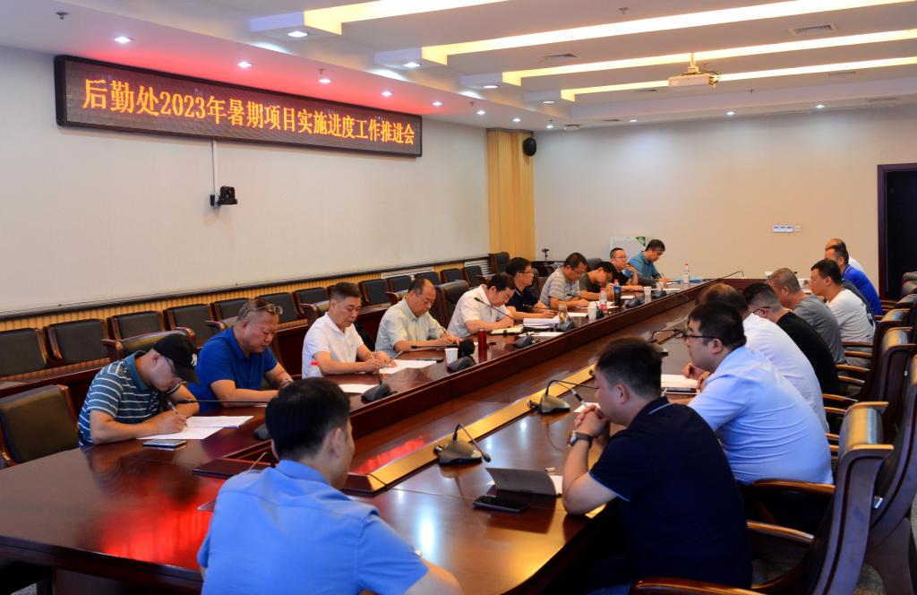 在工作協(xié)調推進會上,李天太代表學校對假期堅守在工作崗位,確保學校各項工作安全、有序運行的第三方服務企業(yè)和重點工程項目施工單位表示感謝。針對暑期后勤保障工作推進,他強調,一是強化責任擔當。第三方企業(yè)單位要把暑期后勤保障任務擺在工作的突出位置,加強協(xié)調、相互補臺,全力推動工作落實。二是合理把握工期。暑期是學校各類維修工作的黃金時間,工期緊、任務重,各項目要合理制定施工方案,嚴格控制項目實施進度,倒排工期,保障工程質量,為學校新學期工作順利開展做好充分準備。三是高度重視安全生產(chǎn)。施工單位要時刻保持居安思危的憂患意識,高度關注室外作業(yè)人員的操作規(guī)范和防暑降溫,做到安全施工、文明施工。