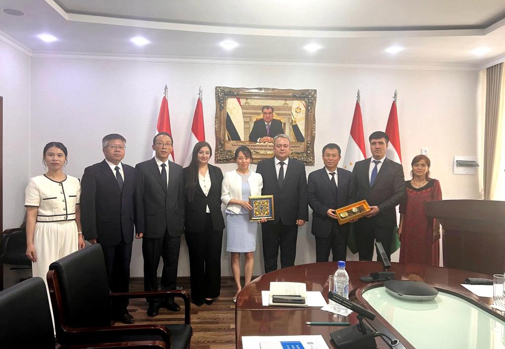 拜訪塔吉克斯坦教科部,受到塔吉克斯坦教科部第一副部長(zhǎng)朱奈德·賈姆希德·哈比布洛(右四)的接待