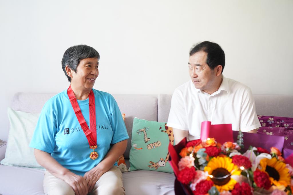 校黨委副書記雷西合先后走訪慰問了潘自安、段翠英兩位離退休老黨員,并為他們佩戴了“光榮在黨50年”紀(jì)念章。雷西合轉(zhuǎn)達(dá)了學(xué)校黨委對他們的問候,與他們深入交談,悉心詢問他們的家庭及健康情況,認(rèn)真聽取他們的意見和建議,讓他們真切感受到黨組織的關(guān)懷和學(xué)校的溫暖。雷西合囑咐老黨員們保重身體,希望他們繼續(xù)發(fā)揮自己的政治優(yōu)勢、經(jīng)驗(yàn)優(yōu)勢和威望優(yōu)勢,為學(xué)校的高質(zhì)量發(fā)展貢獻(xiàn)力量。