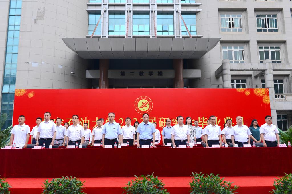 校長李天太為2023屆博士、碩士研究生致辭。李天太代表學校全體教職工向順利完成學業(yè)、獲得學位的1298名研究生表示熱烈祝賀,向辛勤培育同學們的老師、默默支持同學們的親友和社會各界朋友表示誠摯敬意。李天太回顧了我校研究生教育近三年獲得的成就及2023屆畢業(yè)研究生在學業(yè)、科研和學科競賽等方面取得的成績,并向即將告別母校、踏上征途的研究生提出三點希望:一是修身立德、心懷理想,將國家民族命運系于己身;二是胸懷天下、勇于擔當,立于時代之先永不止步;三是積極進取、開拓創(chuàng)新,成為擁有真本領(lǐng)的棟梁之才。最后李天太寄語廣大畢業(yè)研究生,希望他們以遠大理想持續(xù)引領(lǐng)未來事業(yè)的發(fā)展方向,以創(chuàng)新思維努力構(gòu)筑未來事業(yè)的發(fā)展平臺,以必勝信念不斷贏得未來事業(yè)的發(fā)展成就,以深刻思考真正領(lǐng)悟未來人生的價值意義,堅持積極進取,不斷學習,提升自我、完善自我、更新自我,練就過硬本領(lǐng),努力成為可堪大用、能擔重任的棟梁之材。