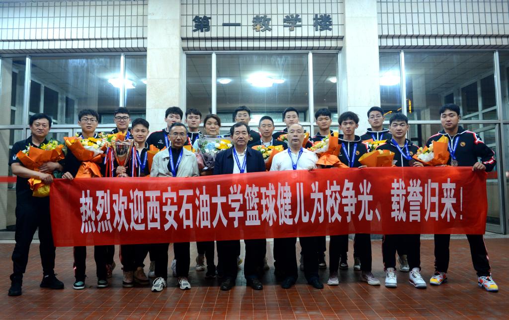 第25屆中國(guó)大學(xué)生籃球二級(jí)聯(lián)賽全國(guó)總決賽近日落下帷幕,我校男子籃球隊(duì)首次參賽便創(chuàng)紀(jì)錄地獲得全國(guó)季軍。5月25日晚,學(xué)校在雁塔校區(qū)為載譽(yù)歸來(lái)的西石大男籃舉行了簡(jiǎn)單而隆重的歡迎儀式,校長(zhǎng)李天太、黨委副書(shū)記張木、副校長(zhǎng)陳軍斌出席,儀式由張木主持。