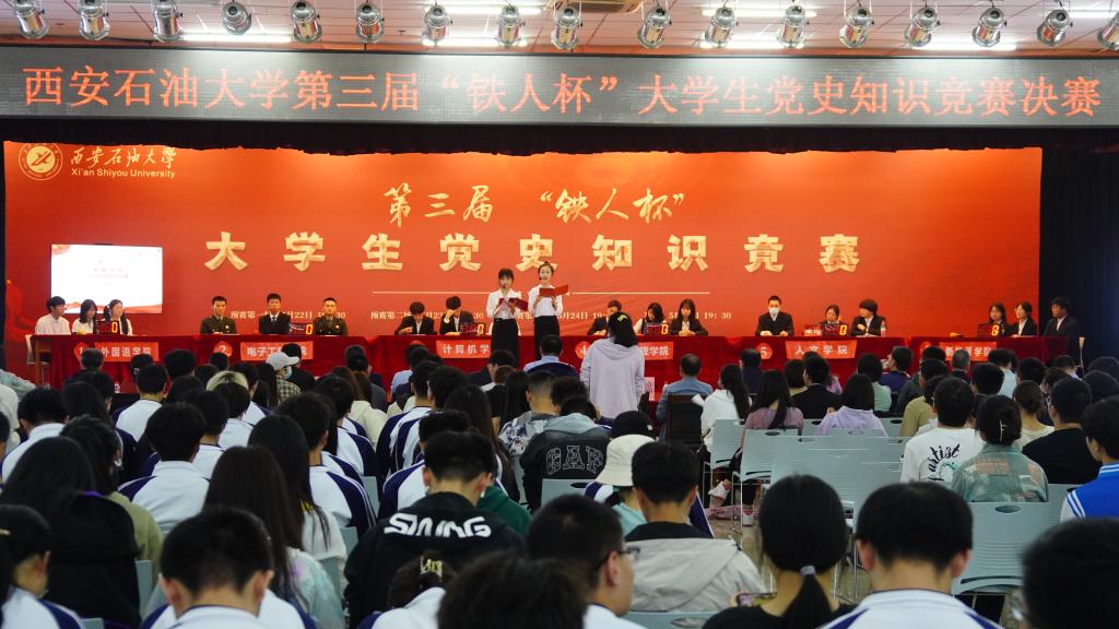 5月29日晚,由馬克思主義學(xué)院、教務(wù)處主辦,組織部、宣傳部、學(xué)工部和校團(tuán)委協(xié)辦的西安石油大學(xué)第三屆“鐵人杯”大學(xué)生黨史知識競賽決賽在鄠邑校區(qū)騰輝大學(xué)生活動中心舉行。校黨委副書記張木蒞臨現(xiàn)場指導(dǎo),相關(guān)部門、院(系)負(fù)責(zé)人、教師及學(xué)生代表觀摩了此次競賽活動。