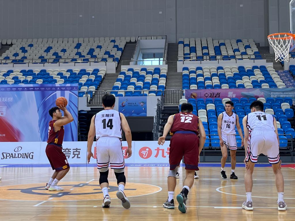 在全國賽小組賽中,首場面對南區(qū)球隊安徽理工大學(xué)。首次面對南方球隊小、快、靈的打法,我方隊員強(qiáng)硬防守、耐心進(jìn)攻,由于地理位置原因,首發(fā)隊員們很快出現(xiàn)了體力不支等情況,主教練迅速調(diào)整陣容,給予休息,隊員們咬牙堅持拼搏,始終保持著領(lǐng)先的優(yōu)勢,最終以98:78的比分戰(zhàn)勝安徽理工大學(xué),首戰(zhàn)告捷。5月20日我校迎來第二場小組賽,對陣曾兩次獲得全國總冠軍的中國刑事警察學(xué)院。開局面對對方全場緊逼,五上五下的戰(zhàn)術(shù),我校隊員咬緊牙關(guān)、穩(wěn)扎穩(wěn)打,上半場結(jié)束時雙方比分膠著,下半場我校隊員手感火熱,率先進(jìn)入節(jié)奏,打出一波小高潮,最終以71:48大比分戰(zhàn)勝中國刑事警察學(xué)院。5月21日我校迎來小組賽第三場比賽,對戰(zhàn)南區(qū)冠軍浙江大學(xué)。上半場比賽雙方難舍難分,以平局結(jié)束。下半場,我校隊員狀態(tài)回暖,連續(xù)三分出手,多次打成二加一,逐漸拉開分差,最終以79:64戰(zhàn)勝南區(qū)冠軍浙江大學(xué)。我校以小組賽全勝的優(yōu)異戰(zhàn)績出線,晉級到后續(xù)的淘汰賽中。