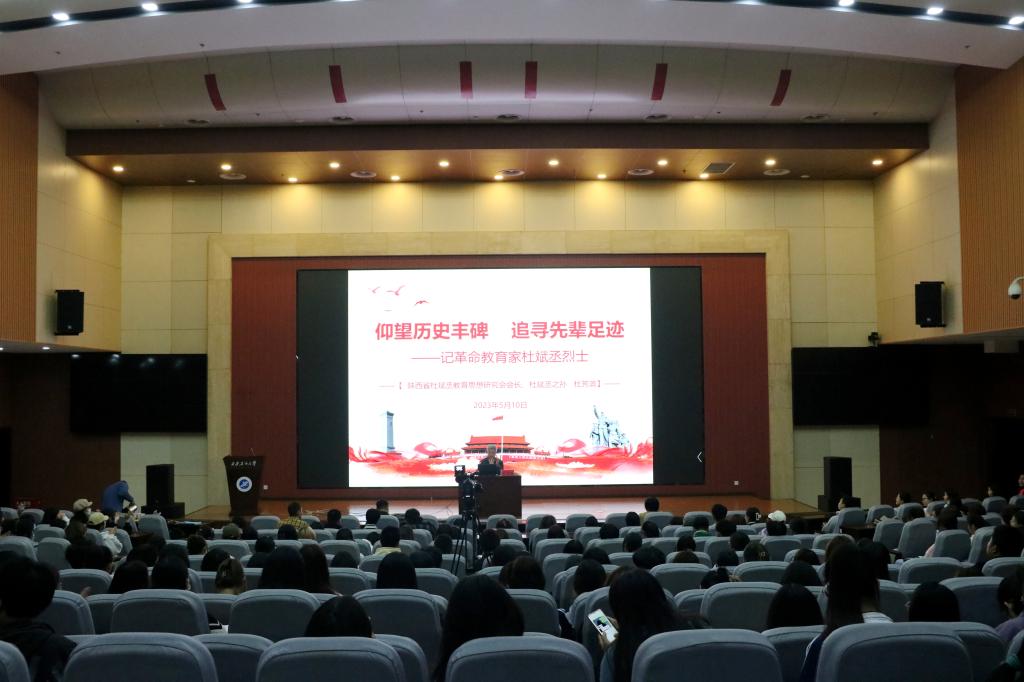 5月10日下午,由校團(tuán)委主辦的第七十七期明德大講堂在鄠邑校區(qū)弘石學(xué)術(shù)報告廳舉行。陜西省杜斌丞教育思想研究會會長、杜斌丞烈士之孫杜芳濱應(yīng)邀作了題為《仰望歷史豐碑 追尋先輩足跡——記革命教育家杜斌丞烈士》的講座,400余名師生現(xiàn)場聆聽報告。