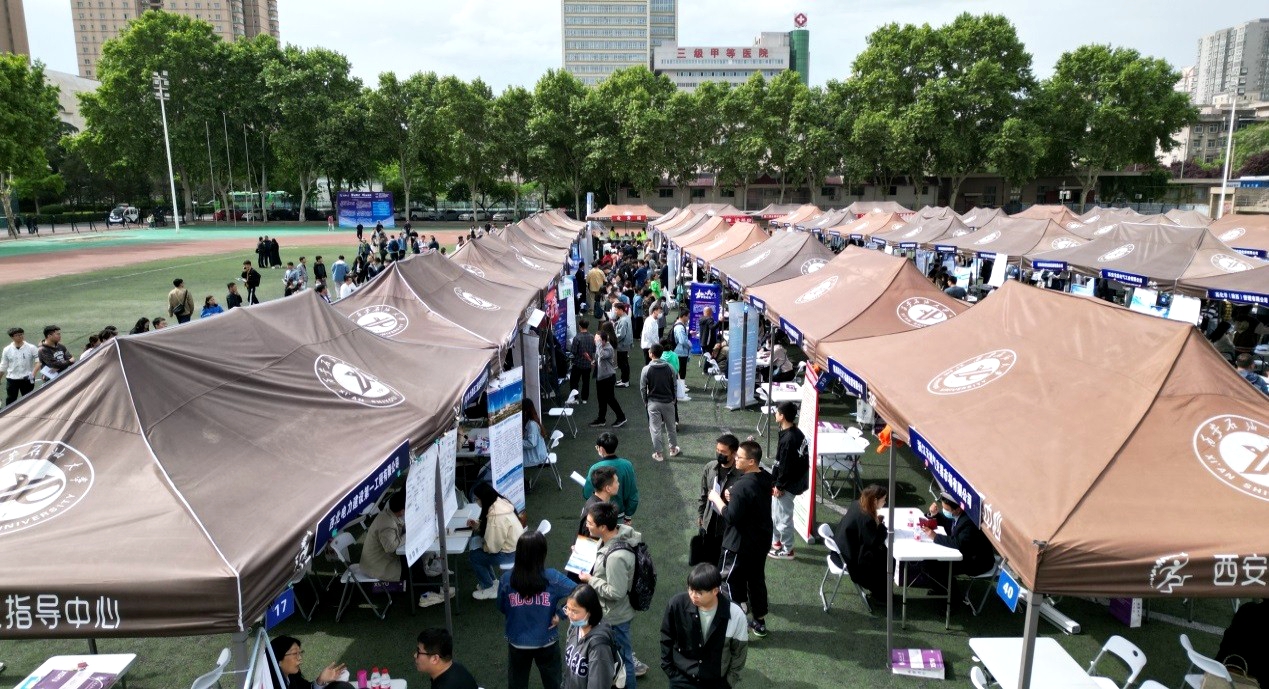 陜西省教育廳二級調(diào)研員白煬、陜西省高等學(xué)校畢業(yè)生就業(yè)服務(wù)中心主任陳靖蒞臨我校調(diào)研指導(dǎo),與用人單位親切交流,深入了解企業(yè)招聘需求,征求高校人才培養(yǎng)意見建議。我校就業(yè)指導(dǎo)中心全體成員,各院(系)學(xué)生工作主要負(fù)責(zé)人、學(xué)生工作辦公室主任、畢業(yè)班輔導(dǎo)員精準(zhǔn)對接,現(xiàn)場指導(dǎo)畢業(yè)生投遞簡歷,推介困難畢業(yè)生就業(yè)。