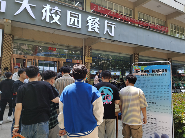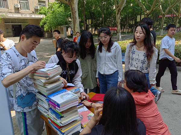 4月19日,圖書(shū)館工作人員在雁塔校區(qū)圖書(shū)館門(mén)前與石大校園餐廳前分別設(shè)立了圖書(shū)捐贈(zèng)點(diǎn),開(kāi)展圖書(shū)捐贈(zèng)活動(dòng)?;顒?dòng)現(xiàn)場(chǎng),廣大師生熱情高漲,積極咨詢(xún)并參與捐贈(zèng),工作人員現(xiàn)場(chǎng)為捐贈(zèng)者頒發(fā)了證書(shū)。很多同學(xué)尤其是畢業(yè)生咨詢(xún)之后結(jié)伴而來(lái),紛紛捐出陪伴自己多年學(xué)習(xí)生活的圖書(shū),為母校獻(xiàn)出一份愛(ài)心,留下一片書(shū)香。