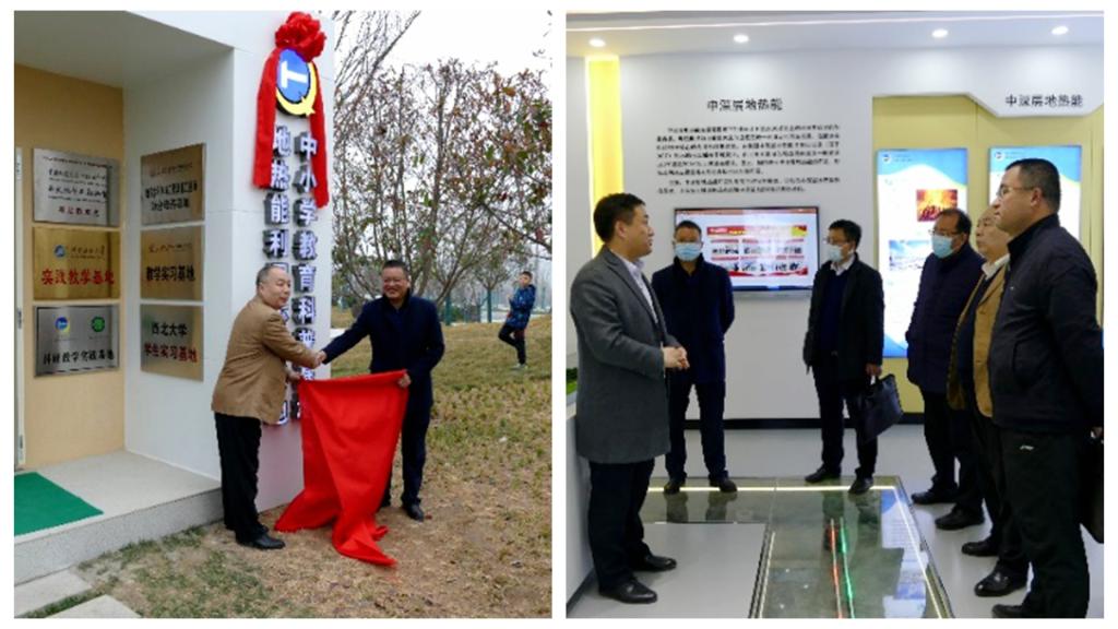 隨后,陳軍斌一行赴涇陽(yáng)臨空科創(chuàng)園參觀淺層地?zé)崮芾檬痉俄?xiàng)目,并與馬思錦共同為西安石油大學(xué)實(shí)踐教學(xué)基地揭牌。沈春強(qiáng)詳細(xì)介紹了項(xiàng)目投資、實(shí)施情況、資源分布儲(chǔ)量以及項(xiàng)目開(kāi)發(fā)前景等。