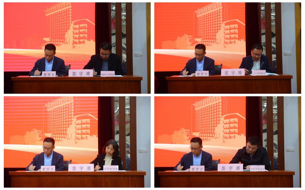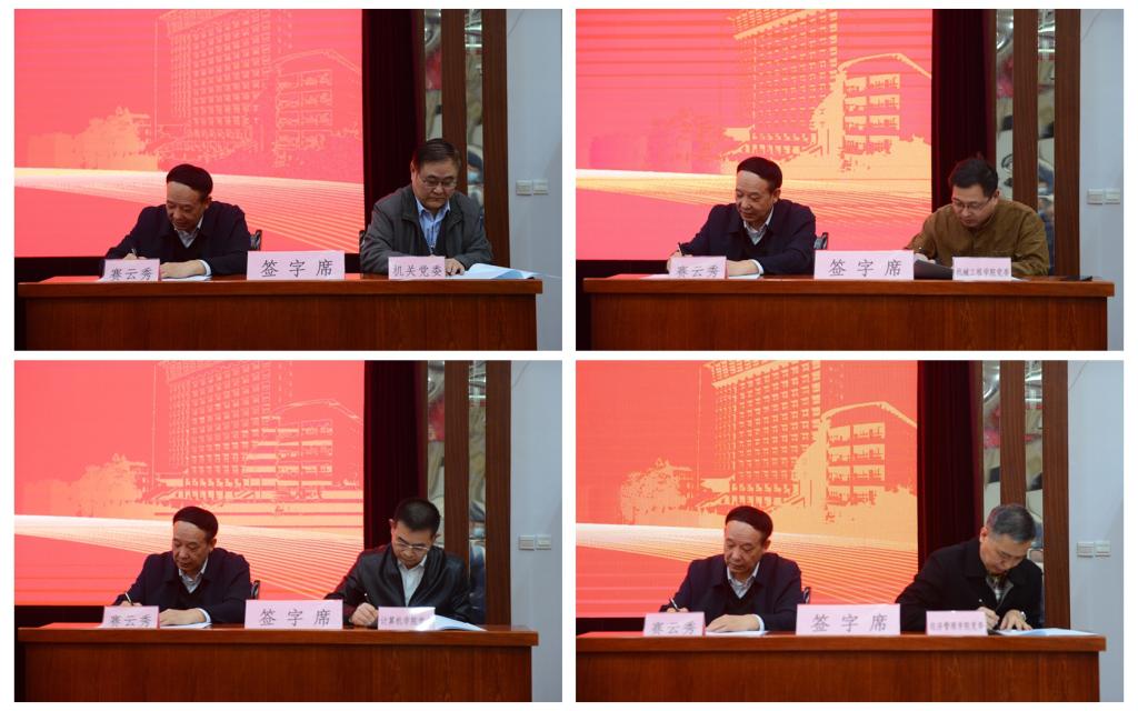 會上,賽云秀、張木、雷西合分別與分管校領導、職能部門和院(系)級單位黨組織代表簽訂了全面從嚴治黨主體責任書、安全穩(wěn)定工作責任書、意識形態(tài)工作責任書。
