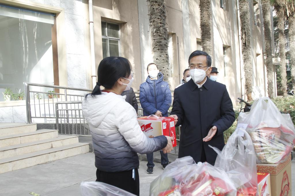 1月19日上午,在新春佳節(jié)來臨之際,校黨委副書記張木、副校長蘇文甫帶領工會全體同志分別在雁塔校區(qū)和鄠邑校區(qū)慰問了保衛(wèi)處、后勤處、校醫(yī)院以及假期值班堅守在一線工作崗位上的部分教職工,帶去了學校對他們的關懷和慰問。