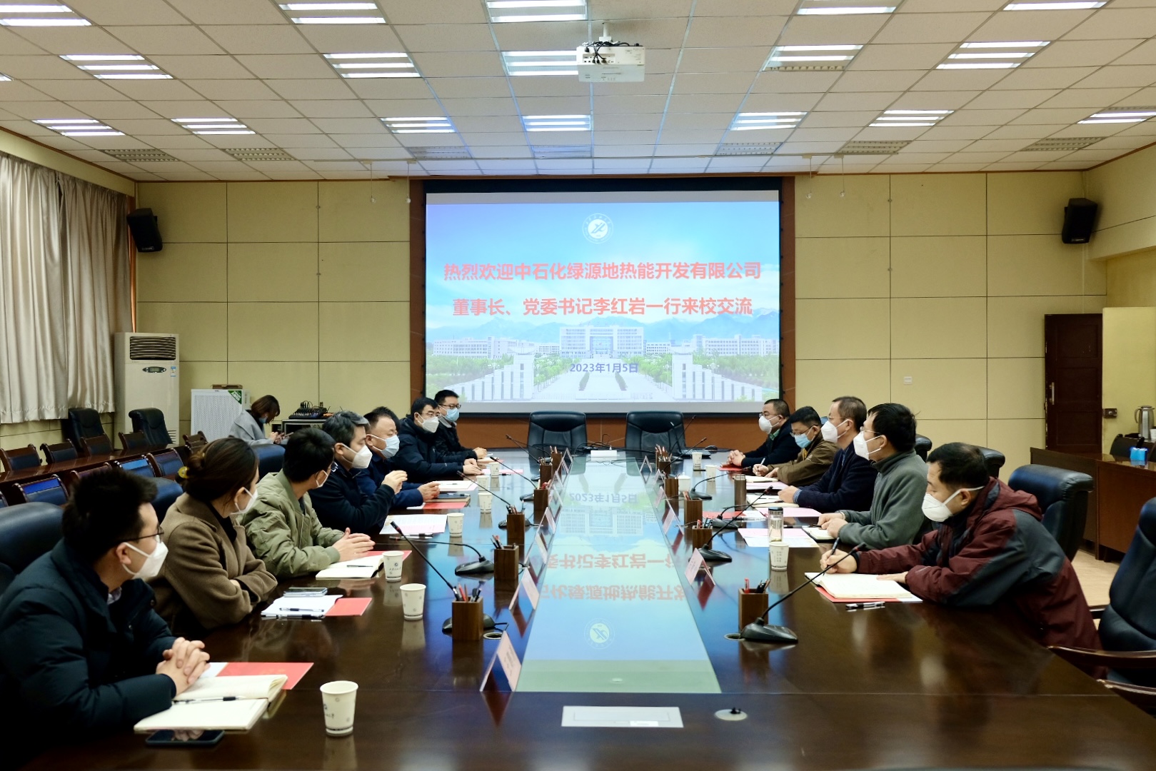 1月5日上午,中石化綠源地熱能開發(fā)有限公司董事長、黨委書記李紅巖一行8人來校交流訪問,會議在雁塔校區(qū)第一會議室召開。我校副校長張榮軍出席會議,科技處處長張益主持會議。