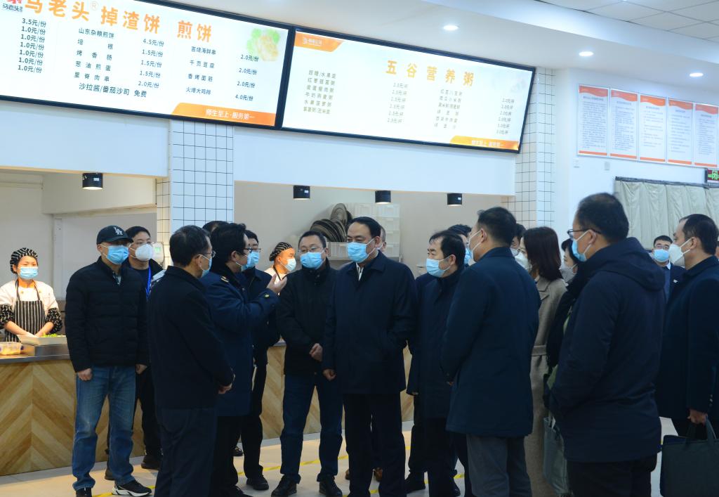 12月3日上午,西安市常務副市長呂來升對我校鄠邑校區(qū)疫情防控和食堂食品安全工作進行督導調(diào)研,鄠邑區(qū)委書記李化、區(qū)長汪國棟、常務副區(qū)長舒元華、副區(qū)長崔科峰和鄠邑區(qū)市場監(jiān)管局、發(fā)改委和灃京工業(yè)園管委會負責人參加此次督導調(diào)研活動,我校校長李天太、黨委副書記張木及我校黨政辦公室(鄠邑校區(qū)管理辦公室)、后勤處、學生工作處、保衛(wèi)處、團委負責人等陪同。
