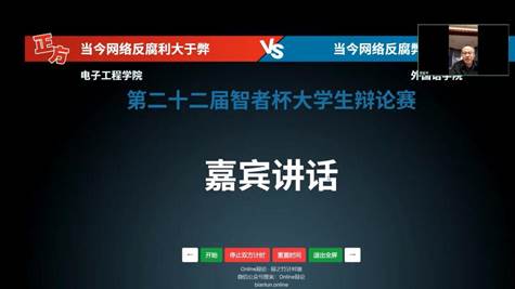 電子工程學院和外國語學院兩支代表隊以“網(wǎng)絡(luò)反腐,利大于弊”還是“網(wǎng)絡(luò)反腐,弊大于利”進行了緊張而激烈的辯論。辯論雙方理論清晰、旁征博引、思辯敏捷、邏輯嚴密、你來我往、精彩紛呈,為我們呈現(xiàn)了一場高水平的辯論賽。最終,電子工程學院獲得第二十二屆“智者杯”大學生辯論賽冠軍,外國語學院獲得亞軍。馬克思主義學院教師朱銀全代表評委團對本場決賽作了點評。