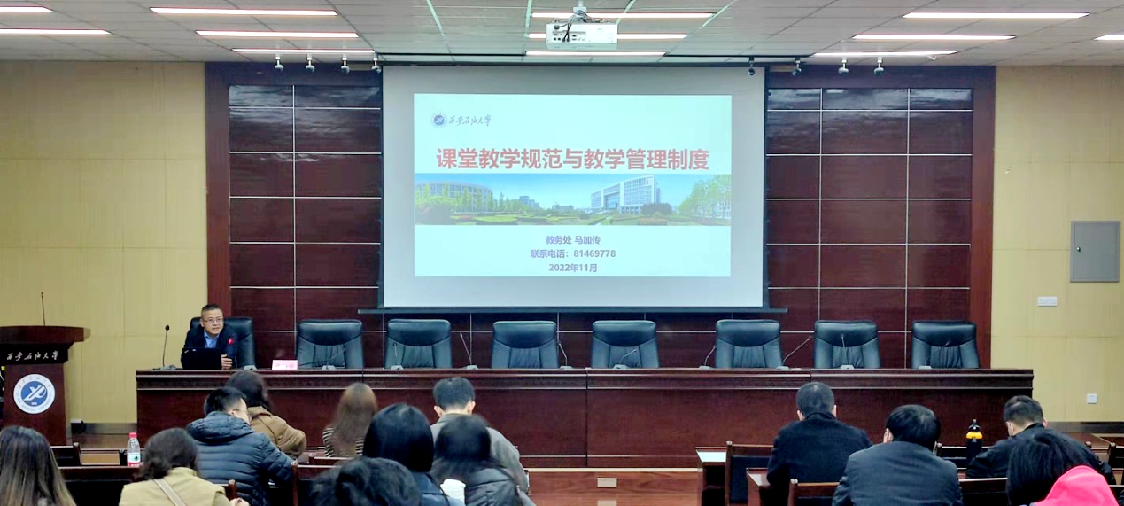 11月9日,學(xué)校在雁塔校區(qū)第五會(huì)議室舉辦新入職教師課堂教學(xué)規(guī)范、教學(xué)管理制度、學(xué)術(shù)道德和科研誠(chéng)信專(zhuān)題教育。教務(wù)處副處長(zhǎng)馬加傳、科技處副處長(zhǎng)丁昌峰應(yīng)邀主講,2022年新入職教師、教師工作部工作人員聆聽(tīng)了講座。