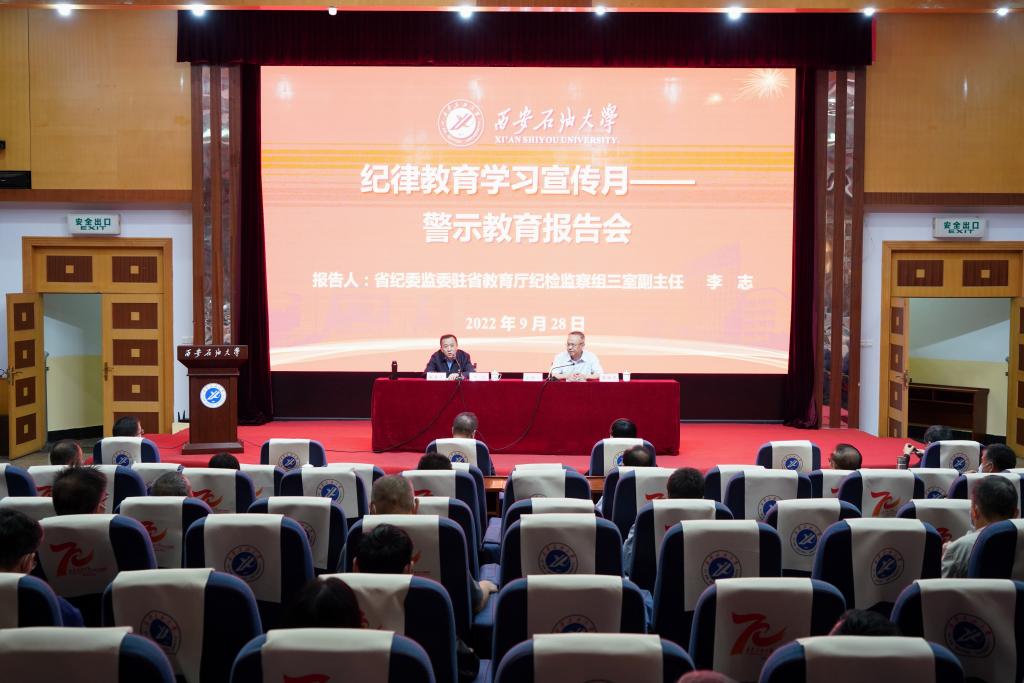 為深入學(xué)習(xí)貫徹習(xí)近平總書記關(guān)于全面從嚴(yán)治黨的重要論述,認(rèn)真落實校黨委關(guān)于開展作風(fēng)建設(shè)專項行動實施方案有關(guān)要求,進(jìn)一步推進(jìn)紀(jì)律教育學(xué)習(xí)宣傳月活動,9月28日下午,學(xué)校紀(jì)委舉辦警示教育專題報告會。報告會在雁塔和鄠邑校區(qū)設(shè)立1個主會場和2個分會場,陜西省紀(jì)委監(jiān)委駐省教育廳紀(jì)檢監(jiān)察組副組長張佳,校領(lǐng)導(dǎo)、全體處級干部、院(系)級單位黨組織紀(jì)檢委員、紀(jì)委(監(jiān)察專員辦公室)干部共160余人參加了報告會。報告會由校黨委副書記、紀(jì)委書記、監(jiān)察專員李延平主持。