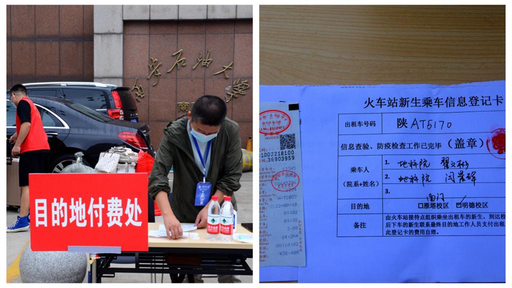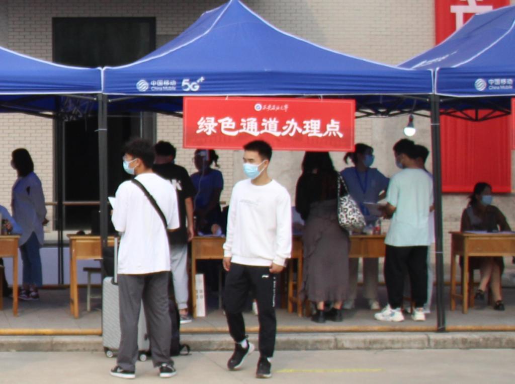 “踏入學(xué)校的大門,熱情體貼的志愿者們就讓我感受到了學(xué)校的熱情,雖然父親不能送我入校,但是各項(xiàng)工作的井井有條讓我充滿安全感,希望大學(xué)成為我新的舞臺(tái),努力去獲得自己想要的成長(zhǎng)?!眮?lái)自地球科學(xué)與工程學(xué)院的新生任艷麗是由父親陪伴來(lái)校報(bào)到的,由于疫情防控要求,父親不能進(jìn)入校園陪她辦理報(bào)到手續(xù),但在熱情的學(xué)長(zhǎng)學(xué)姐們幫助下,順利完成了各項(xiàng)手續(xù)。
