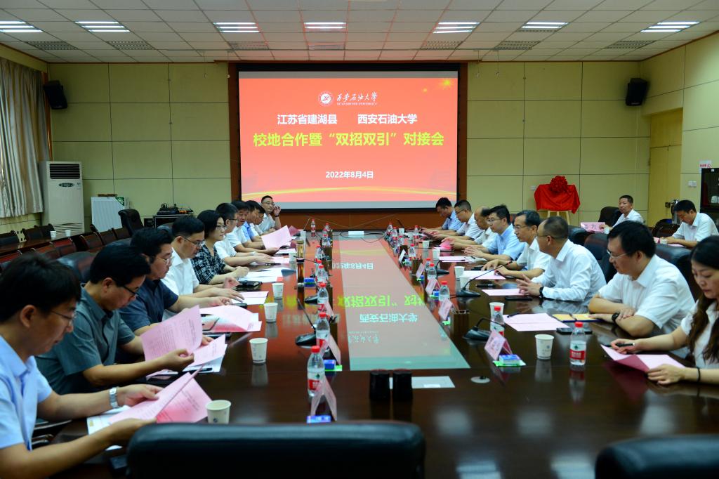8月4日上午,我校與建湖縣校地合作暨“雙招雙引”對接會在雁塔校區(qū)會議中心第一會議室舉行。學校黨委副書記張木,建湖縣委常委、組織部部長、開發(fā)區(qū)黨工委書記孫紅,建湖縣委組織部副部長、縣委黨建辦主任孫盤檜,建湖縣科技局局長、黨組書記曾令群,建湖縣科技局副局長呂忠東及建湖縣有關石油石化企業(yè)負責人出席對接會。對接會由黨政辦公室主任趙健主持。