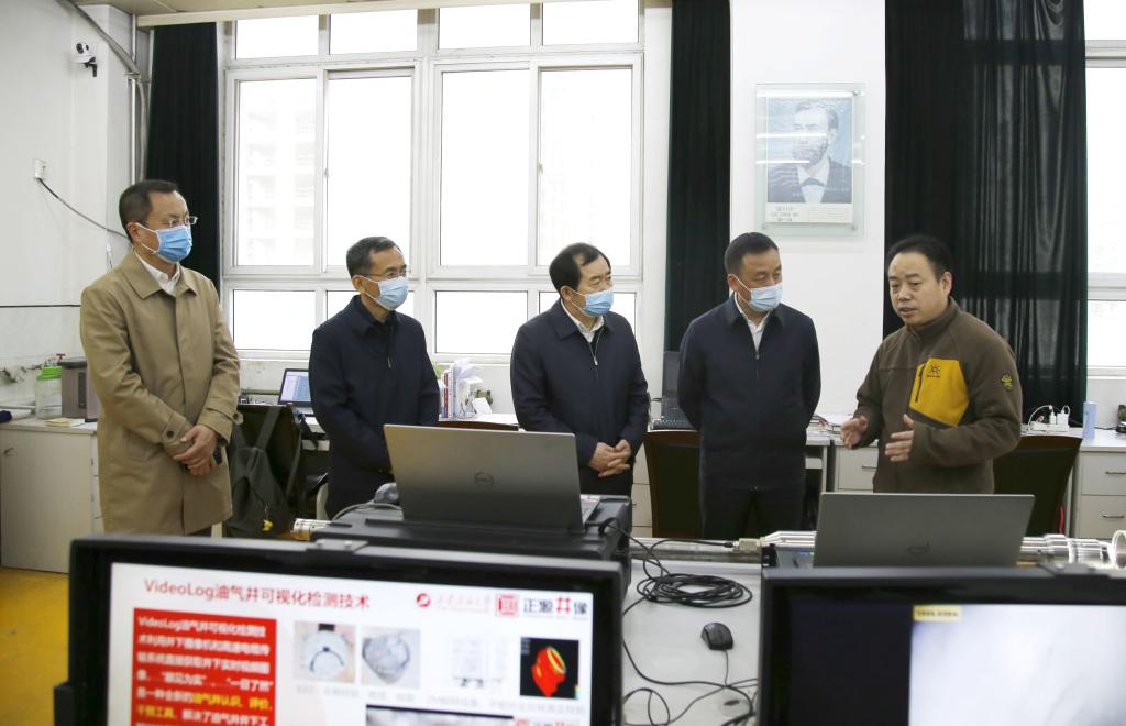 調(diào)研期間,何江川書記在學(xué)校領(lǐng)導(dǎo)陪同下參觀了油氣鉆井國家工程實驗室井下測控研究室和陜西省油氣井測控技術(shù)重點實驗室,詳細(xì)了解了旋轉(zhuǎn)導(dǎo)向鉆井技術(shù)與裝備、測井技術(shù)與裝備、油氣井可視化檢測技術(shù)與裝備的研發(fā)進(jìn)展、核心技術(shù)和應(yīng)用情況,并與研發(fā)人員進(jìn)行了深入的交流和探討。