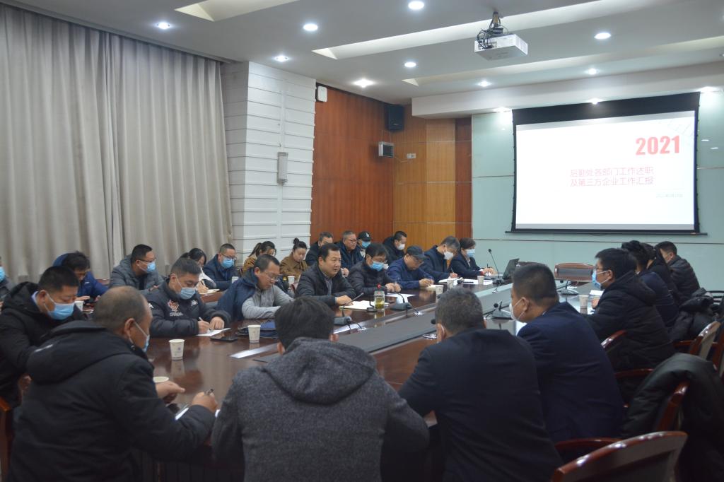 218日,后勤處在雁塔校區(qū)第四會議室召開了專題工作會議,對2021年度各部門工作進行集體述職,組織部分第三方企業(yè)進行半年度工作匯報。同時,謀篇布局、安排部署新一年度工作。副校長蘇文甫出席專題會議并對后勤工作提出要求。后勤處班子成員、各中心副主任以上干部,以及第三方服務(wù)企業(yè)代表30余人參加會議。