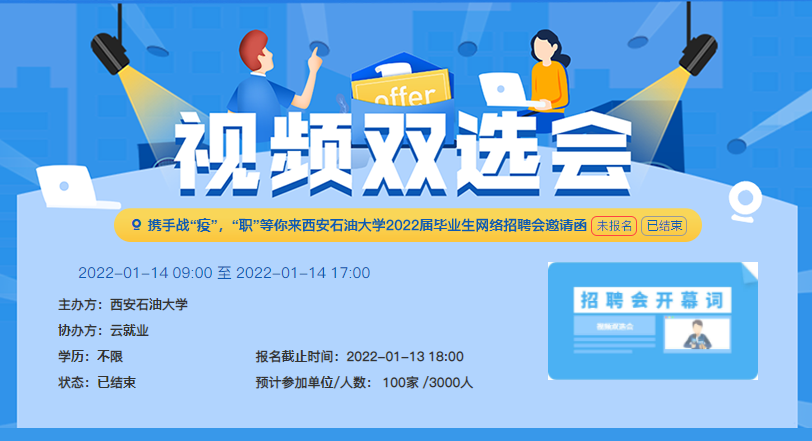 搭平臺。一是大力舉辦線上招聘活動,積極搭建網(wǎng)絡(luò)招聘平臺,暢通就業(yè)信息線上發(fā)布渠道,持續(xù)發(fā)布招聘信息,密集開展網(wǎng)絡(luò)招聘活動。疫情發(fā)生以來,已舉辦或承辦全國能源動力行業(yè)專場空中雙選會、千崗萬企業(yè) 百校聯(lián)合陜西抗疫助就業(yè)西安石油大學(xué)專場網(wǎng)絡(luò)招聘會、同心戰(zhàn)疫 助力就業(yè)陜西地區(qū)重點高校2022屆畢業(yè)生(公益)空中雙選會、陜西省2022屆畢業(yè)生綜合類網(wǎng)絡(luò)雙選會、攜手戰(zhàn)疫,職等你來西安石油大學(xué)2022屆畢業(yè)生網(wǎng)絡(luò)招聘會、陜西省部屬及省屬高水平大學(xué)暖冬行動·研后有你”2022屆畢業(yè)生冬季空中雙選會等大型招聘會共計15場,累計參會單位達4000余家。二是開啟重點企業(yè)重點行業(yè)專場空中宣講平臺。積極邀請用人單位參加空中宣講、互動答疑和視頻面試,全面加強與用人單位溝通交流與合作。截至目前,已開展空中宣講會10場,其中包括海爾集團、浙江吉利控股、京東集團、牧原食品在內(nèi)的優(yōu)質(zhì)用人單位。三是全面搜集挖掘各類招聘信息。疫情發(fā)生以來,充分利用就業(yè)指導(dǎo)中心官網(wǎng)、公眾號、QQ/微信群等累計發(fā)布包括中鐵一局集團公司、中澤油服、中國一汽、中國船舶重工、十堰市選調(diào)生等單位招聘公告70次,招聘崗位信息81條,總點擊量達2萬余次。
