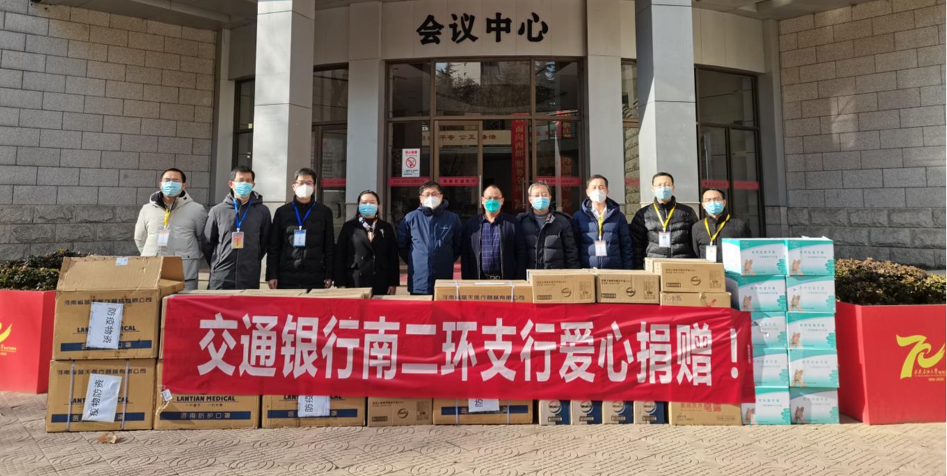 交通銀行南二環(huán)支行用實(shí)際行動踐行國有大行社會責(zé)任,肩負(fù)起使命擔(dān)當(dāng),為學(xué)校打贏這場沒有硝煙的疫情阻擊戰(zhàn)貢獻(xiàn)力量。