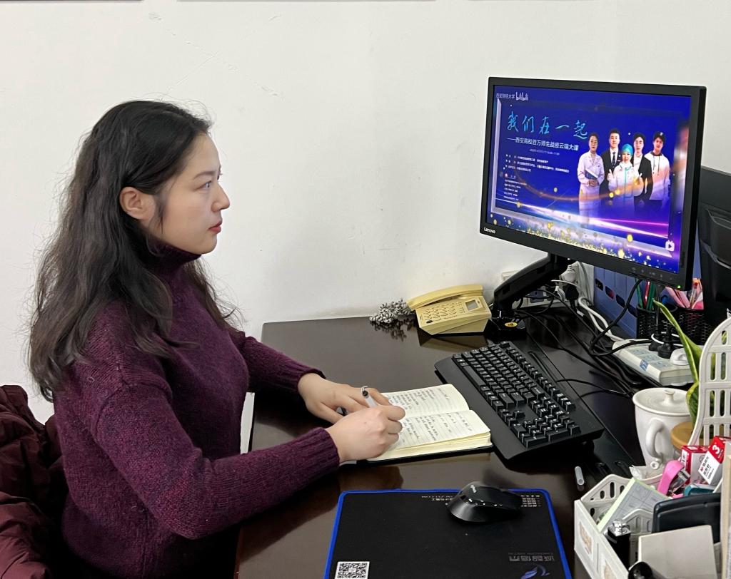 為進(jìn)一步凝聚師生力量,堅定戰(zhàn)疫必勝信心,教育引導(dǎo)廣大師生自覺弘揚偉大抗疫精神,在疫情防控阻擊戰(zhàn)的生動實踐中踐行“請黨放心,強國有我”的錚錚誓言,根據(jù)省委教育工委、省教育廳安排和校黨委要求,1月7日上午,我校組織在校師生通過網(wǎng)絡(luò)共同上了“我們在一起——西安高校百萬師生戰(zhàn)疫云端大課”。本次課程累計收聽收看11600余人,其中學(xué)工干部100余人,本科生8100余人,研究生3400余人,留學(xué)生70余人。