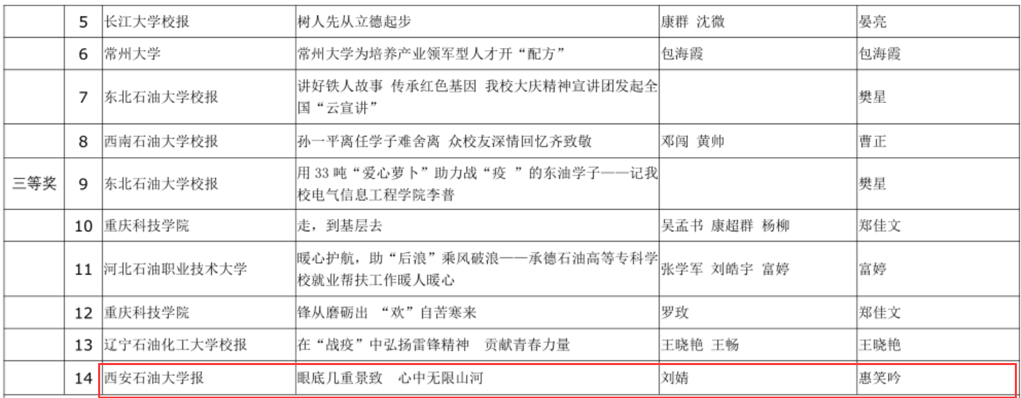 [捷報(bào)快遞]我校2件校報(bào)作品獲中國(guó)石油優(yōu)秀新聞作品獎(jiǎng)