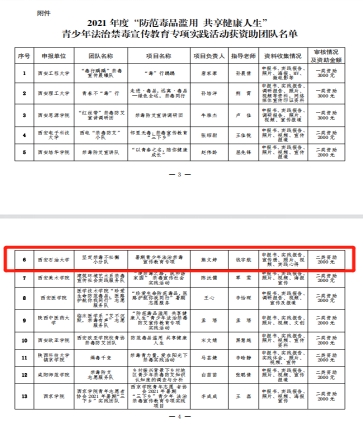 近日,根據(jù)共青團陜西省委員會下發(fā)文件《關(guān)于確定2021年度“防范毒品濫用 共享健康人生”青少年法治禁毒宣傳教育專項實踐活動獲資助團隊的通知》,我?!皥远ń静凰尚感》株牎鄙鐣嵺`團被確定為專項實踐活動資助項目。