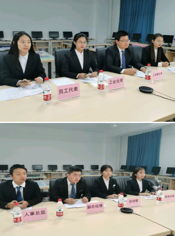 集體協(xié)商談判是一種合作式的談判,為企業(yè)和職工搭建起溝通橋梁,推動(dòng)企業(yè)健康持續(xù)和諧發(fā)展,維護(hù)經(jīng)濟(jì)社會穩(wěn)定大局發(fā)揮了重要作用。大賽為學(xué)生提供了一個(gè)展示學(xué)習(xí)成果的平臺,幫助學(xué)生儲備了勞動(dòng)關(guān)系協(xié)調(diào)、勞動(dòng)矛盾化解的專業(yè)能力。我校首次參加該項(xiàng)賽事,在學(xué)校領(lǐng)導(dǎo)的高度重視與支持之下,由朱海娟、肖焰兩位老師做專業(yè)指導(dǎo),李焱老師做場地、網(wǎng)絡(luò)技術(shù)支持,兩支參賽隊(duì)伍刻苦鉆研比賽案例,在談判中互相協(xié)作、共同提升。經(jīng)過四場緊張的對決,由曹俊、黨曉婕、高一喆、田彥組成的資方代表隊(duì),王思淇、王嘉華、蘭艷芳、謝彤組成的勞方代表隊(duì)均榮獲團(tuán)隊(duì)二等獎(jiǎng)的佳績。