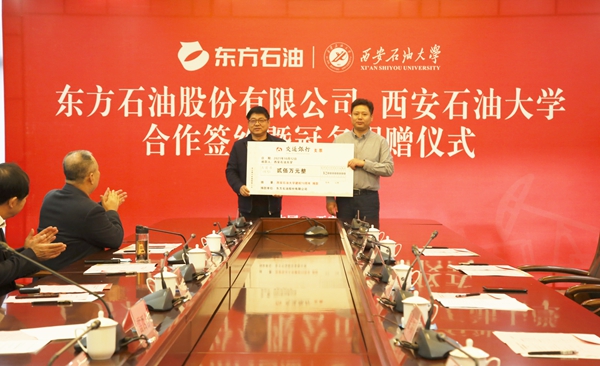 1012日上午,我校與東方石油股份有限公司合作簽約暨冠名捐贈儀式在鄠邑校區(qū)圖書館第二會議室舉行。東方石油股份有限公司董事長兼總經(jīng)理劉浩、副總經(jīng)理姜濤、吳偉,財務(wù)總監(jiān)毛維維、副總經(jīng)理潘英,我校黨委書記賽云秀、校長李天太、副校長陳軍斌、總會計師樊曉民出席會議,會議由校黨委副書記雷西合主持。