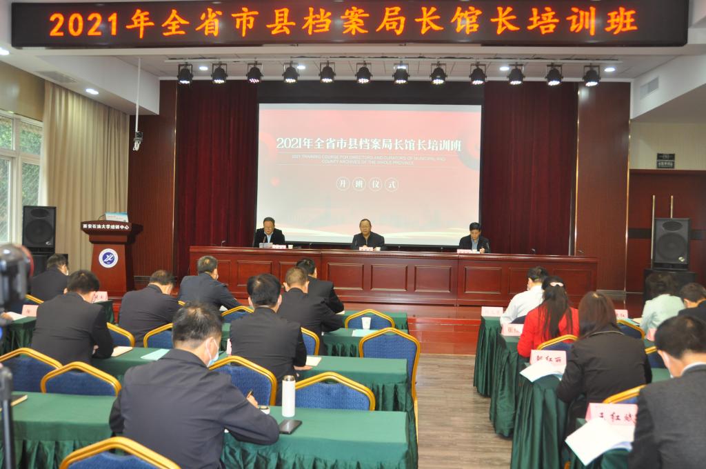 10月11日上午,2021年全省市縣檔案局長館長培訓班在我校培訓中心順利開班。省委副秘書長、省檔案局館長高新民,副校長楊戰(zhàn)社出席開班儀式。儀式由陜西省檔案局二級巡視員、人事處處長王展志主持。來自全省各市、縣檔案局館長及省檔案館干部80余人將參加本次培訓。