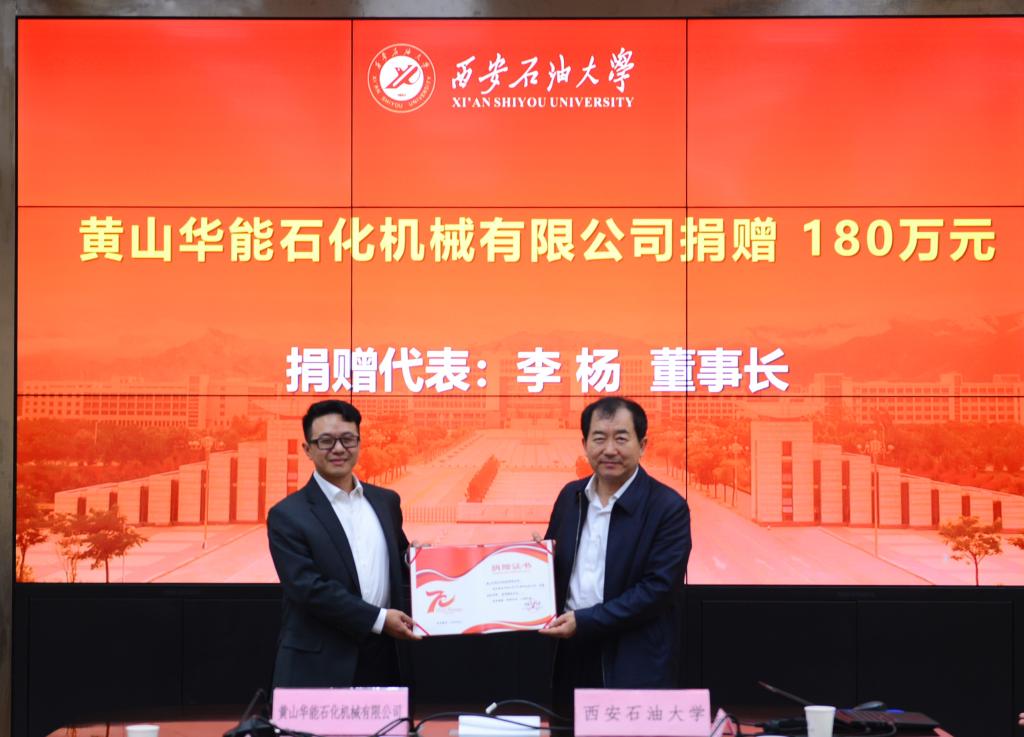 李天太校長對李楊董事長一行表示熱烈歡迎,對李楊校友一直以來對學(xué)校建設(shè)發(fā)展的關(guān)心與大力支持表示感謝。他簡要介紹了學(xué)校的辦學(xué)歷史和發(fā)展近況,以及對新能源、新材料、人工智能等發(fā)展展望。李校長表示,黃山華能石化機(jī)械有限公司長期以來與學(xué)校保持著良好的合作關(guān)系,時值學(xué)校70年校慶能慷慨捐贈助力學(xué)校建設(shè)發(fā)展,充分表達(dá)了對母校的關(guān)心關(guān)愛和支持,為學(xué)校事業(yè)發(fā)展增添了動力和活力。他希望黃山華能石化機(jī)械有限公司能以此為契機(jī),進(jìn)一步加強(qiáng)與學(xué)校的合作交流,一如既往地支持學(xué)校的建設(shè)發(fā)展,同時推動雙方在石油鉆采自動化、數(shù)字化設(shè)備及控制系統(tǒng)、工業(yè)智能設(shè)備、環(huán)保設(shè)備等多領(lǐng)域的合作。