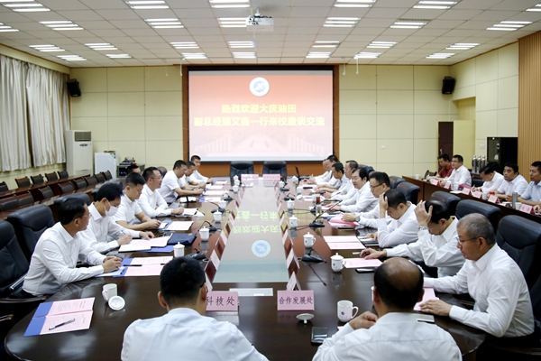 李天太校長對艾鑫副總經(jīng)理一行表示熱烈歡迎,簡要介紹了學(xué)校的辦學(xué)歷史和發(fā)展近況,以及在科學(xué)研究、人才培養(yǎng)、校區(qū)綜合服務(wù)提升等方面做出的努力和取得的成績。他講到,多年來,學(xué)校堅(jiān)持依托學(xué)科、行業(yè)和區(qū)位優(yōu)勢,在技術(shù)成果轉(zhuǎn)化、應(yīng)用技術(shù)攻關(guān)、產(chǎn)學(xué)研合作、實(shí)踐基地建設(shè)、創(chuàng)新創(chuàng)業(yè)等領(lǐng)域,先后與多家石油石化企業(yè)開展合作,探索建立了協(xié)同創(chuàng)新、精準(zhǔn)服務(wù)、聯(lián)動(dòng)發(fā)展的長效機(jī)制,得到了合作企業(yè)的普遍認(rèn)可和高度贊同。簽署合作框架協(xié)議后,學(xué)校將進(jìn)一步發(fā)揮科研優(yōu)勢,將合作框架協(xié)議內(nèi)容落地落實(shí),以產(chǎn)學(xué)研用深度融合助力大慶鉆探工程公司高質(zhì)量發(fā)展。