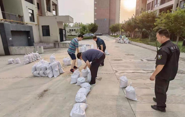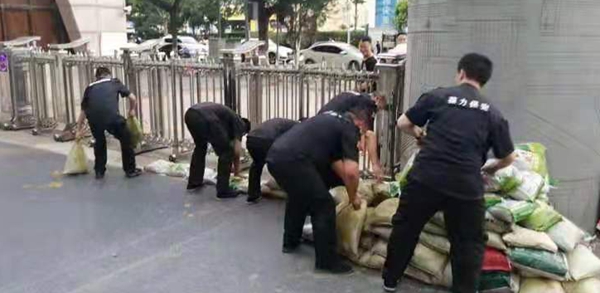 7916:30—20:40 ,保衛(wèi)處干部隊(duì)員齊上手,在地勢(shì)低洼部位堆壘沙袋。