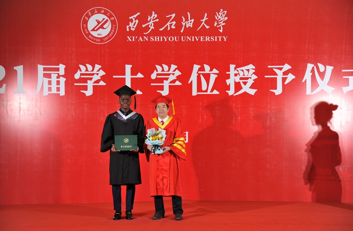 627上午,西安石油大學(xué)2021屆優(yōu)秀畢業(yè)生代表學(xué)士學(xué)位授予儀式在鄠邑校區(qū)弘石學(xué)術(shù)報(bào)告廳隆重舉行。校長(zhǎng)、校學(xué)位評(píng)定委員會(huì)主席李天太,校黨委副書(shū)記、校學(xué)位評(píng)定委員會(huì)副主席張木,副校長(zhǎng)、校學(xué)位評(píng)定委員會(huì)副主席陳軍斌出席儀式。鄠邑校區(qū)管理辦公室、學(xué)生工作處、保衛(wèi)處、教務(wù)處等相關(guān)職能部門(mén)負(fù)責(zé)人、各院(系)負(fù)責(zé)人、291名優(yōu)秀畢業(yè)生代表及其家人參加授位儀式。學(xué)士學(xué)位授予儀式由校學(xué)位評(píng)定委員會(huì)副主席張木主持。