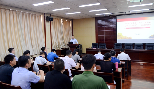 6月25日下午,張榮軍副校長在雁塔校區(qū)會議中心第五會議室作了題為《學習百年黨史 認清石油形勢 啟航“十四五” 奮進新征程》的黨史學習教育專題輔導報告。人事處、科技處、國際交流與合作處、國際教育學院、信息中心、電子工程學院科級以上干部、教職工黨支部書記、支部委員及教師代表近100人參加了報告會。電子工程學院黨委書記何鋮主持報告會。