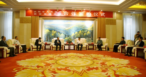我校黨委書記賽云秀對學校整體發(fā)展情況進行了介紹。他指出,多年來學校堅持以石油精神辦學、鐵人精神育人、延安精神鑄魂,積淀形成了“愛國奉獻、艱苦奮斗、科學求實、開拓進取”的辦學精神和“為人誠實、基礎(chǔ)扎實、作風樸實、工作踏實、開拓創(chuàng)新”的人才培養(yǎng)特色,培養(yǎng)了一大批石油石化人才。同時,學校堅持依托學科、行業(yè)和區(qū)位優(yōu)勢,全力服務(wù)甘肅省高端能源化工產(chǎn)業(yè)發(fā)展,加強與甘肅石油石化企業(yè)的合作交流與科研攻關(guān),取得了顯著成果和效益。他表示,慶陽市能源資源富集,歷史文化厚重,希望雙方進一步加強合作,共同推動油氣資源開發(fā)利用,實現(xiàn)互利共贏。此次與慶陽市簽署合作框架協(xié)議后,學校將充分發(fā)揮科技成果研發(fā)和人才優(yōu)勢,與慶陽市相關(guān)單位和部門加強合作、共謀發(fā)展,為慶陽經(jīng)濟社會發(fā)展做出新的貢獻。