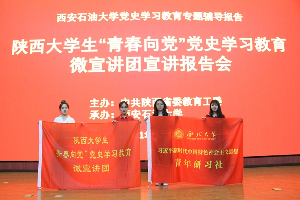 為深入學習習近平總書記在黨史學習教育動員大會上的重要講話精神,按照省委教育工委、省教育廳統(tǒng)一安排,結合學校黨史學習教育計劃,6月11日下午,陜西大學生黨史學習教育微宣講團代表應邀來我校作陜西大學生“青春向黨”黨史學習教育宣講報告會。四位大學生微宣講團代表在鄠邑校區(qū)弘石報告廳作宣講報告,我校400余名師生參加報告會。