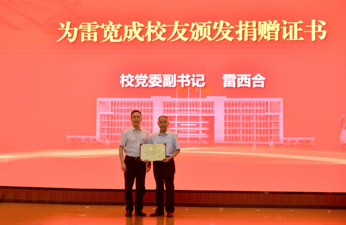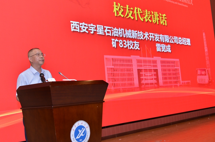 在發(fā)布儀式上,西安宇星石油機械新技術(shù)開發(fā)有限公司為學校捐贈了一臺價值200余萬元的SXJ900多用途修井機。校黨委副書記雷西合為石油礦場機械專業(yè)1983級校友、西安宇星石油機械新技術(shù)開發(fā)有限公司總經(jīng)理雷寬成頒發(fā)了捐贈證書。雷寬成校友在致辭中回顧了自己的在校學習、工作經(jīng)歷,以及自己從母?!皥F結(jié)、勤奮、求是、創(chuàng)新”校風、“好學力行、自強不息”校訓中的受益,衷心感謝母校及各位老師的培養(yǎng),并向廣大在校師生表達了期望與祝福。